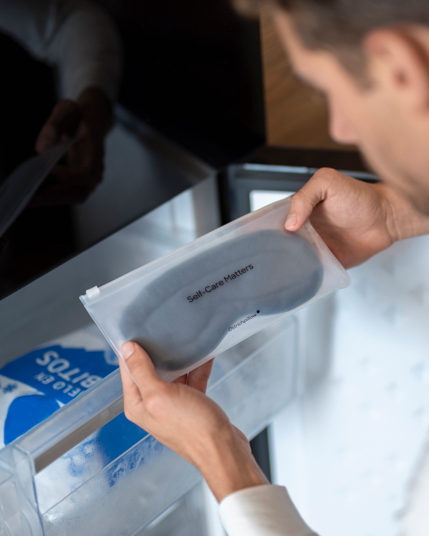 Place Hot & Cold Eye Mask into its zippered EVA bag in the freezer for at least 1 hour. Check if the temperature is adequate.